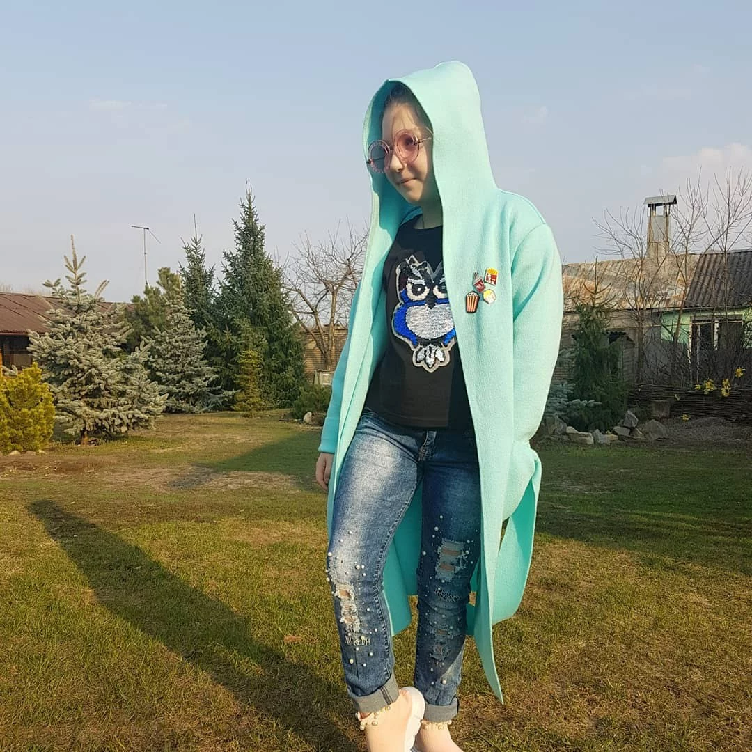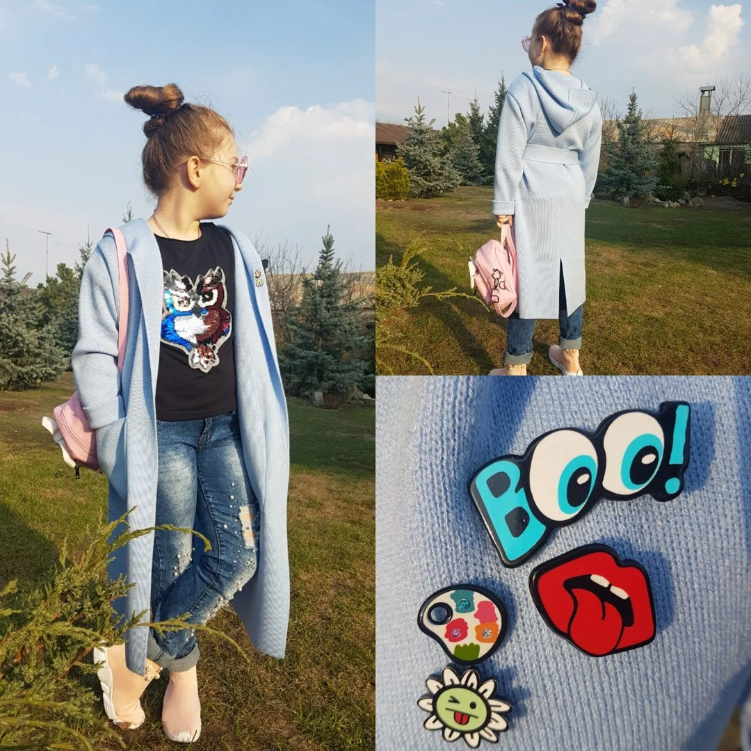 Кардиган, со сменными значками, два глубоких рабочих кармана, объемный капюшон.