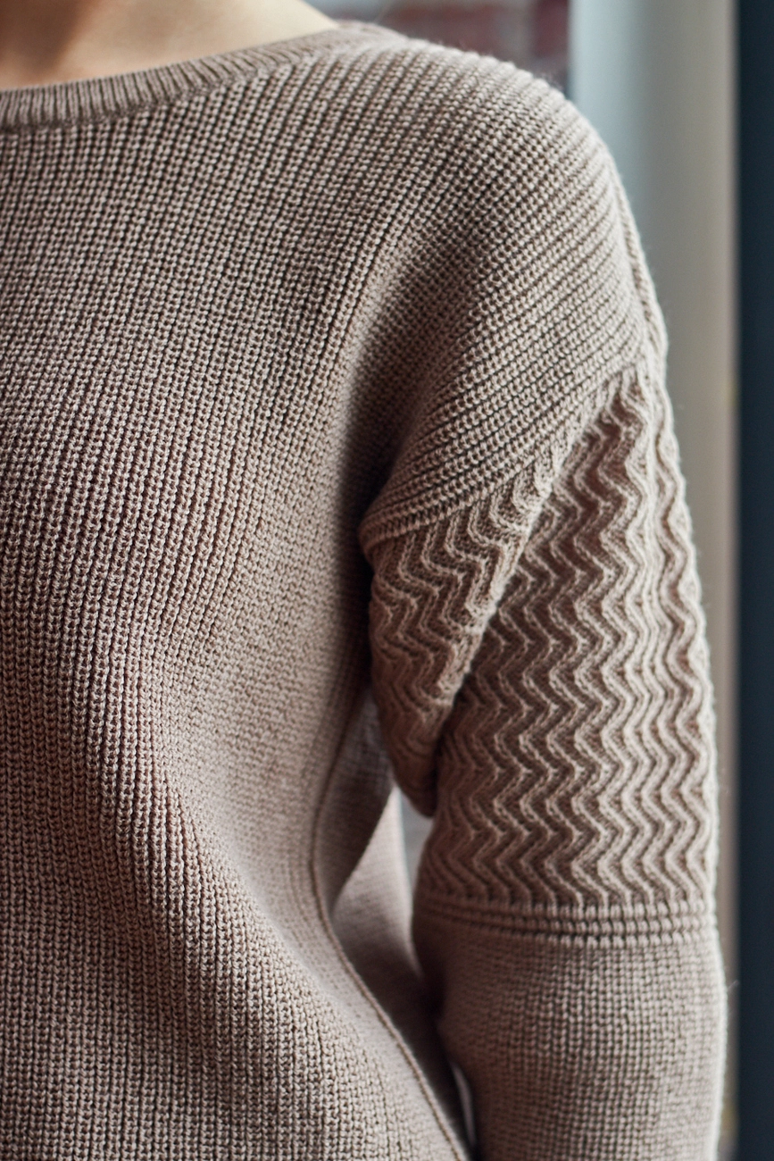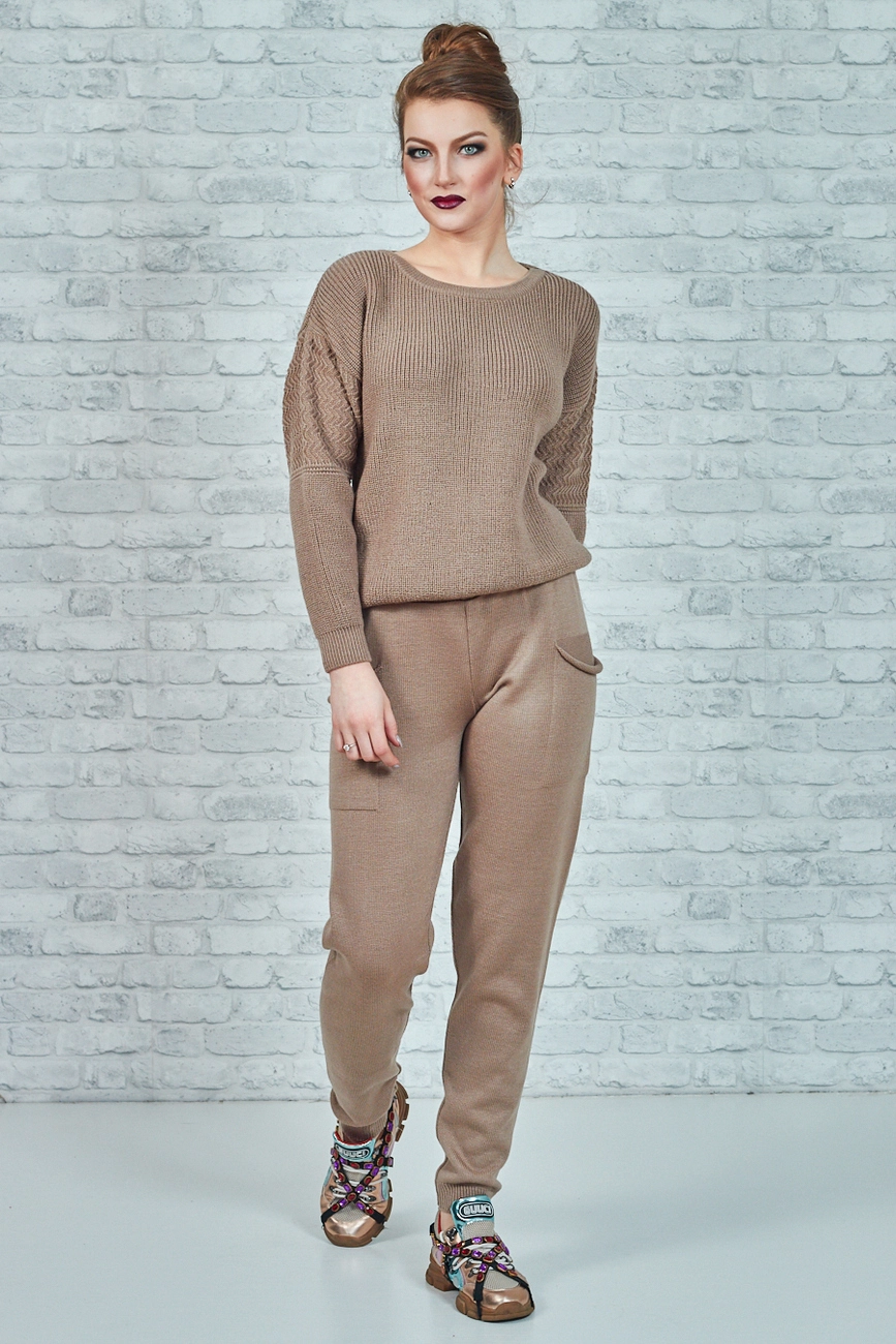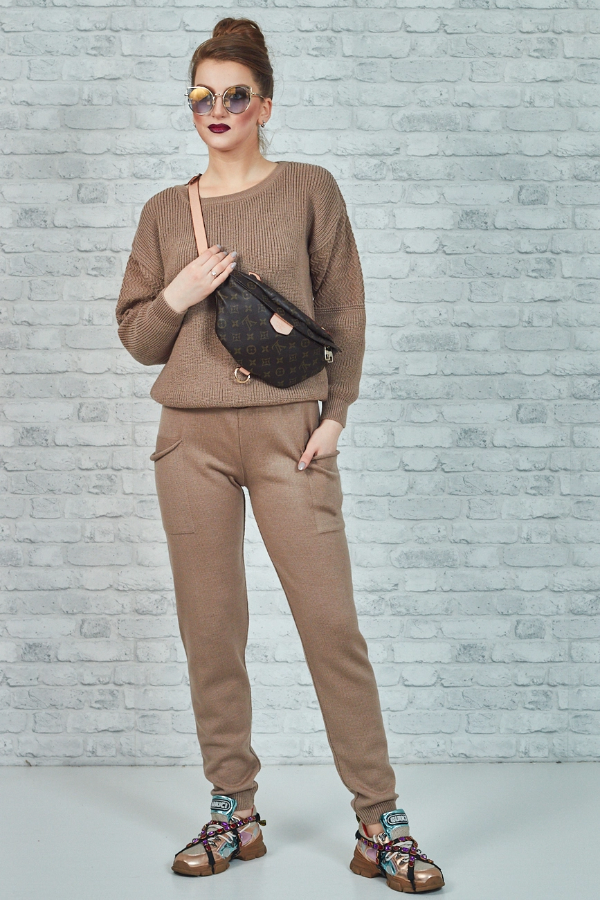 Сочетание двух видов вязки придают костюму особенной