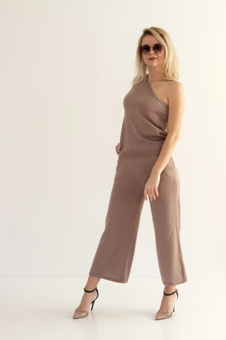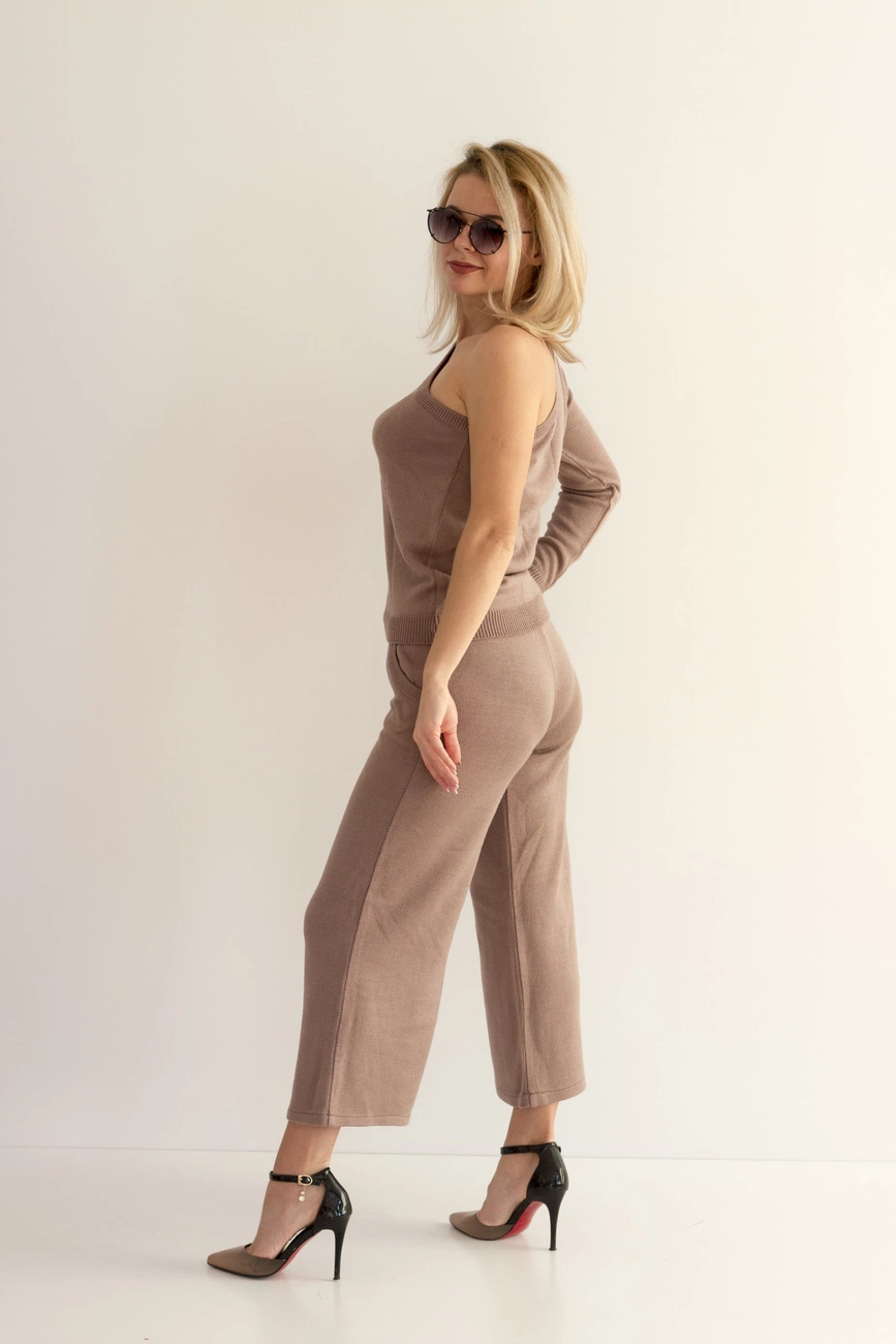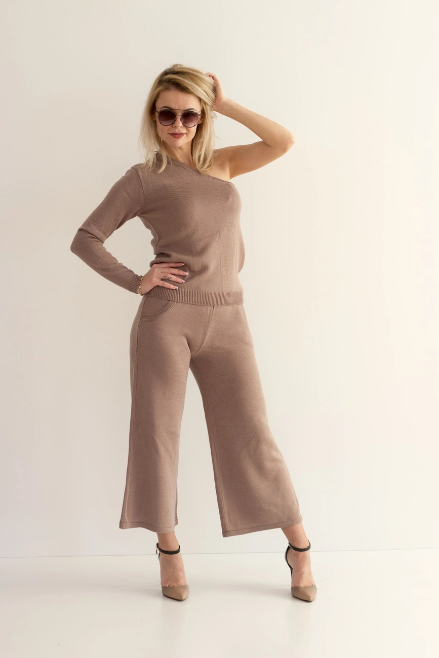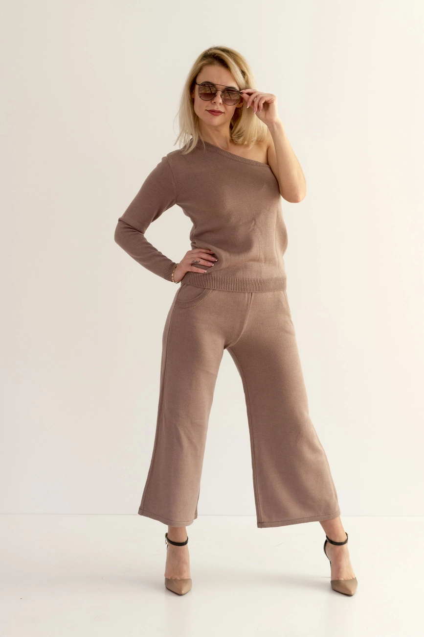 Сочетание вязаной фактуры и открытых плеч – еще один привлекательный тренд