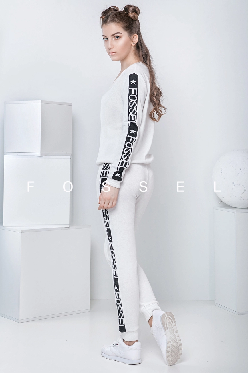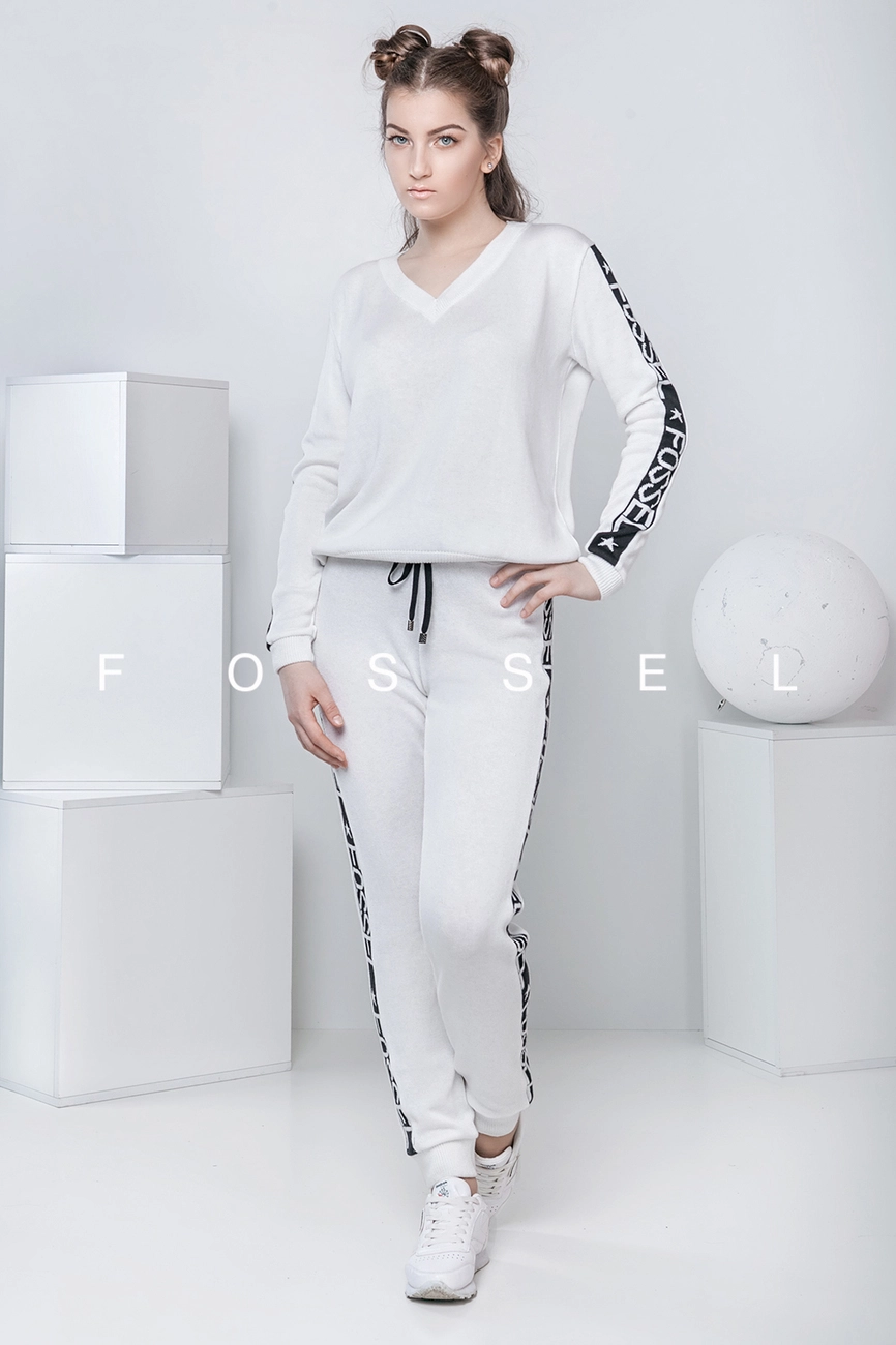Стильный костюм, с ломпасом Fossel на штанах и джемпере.